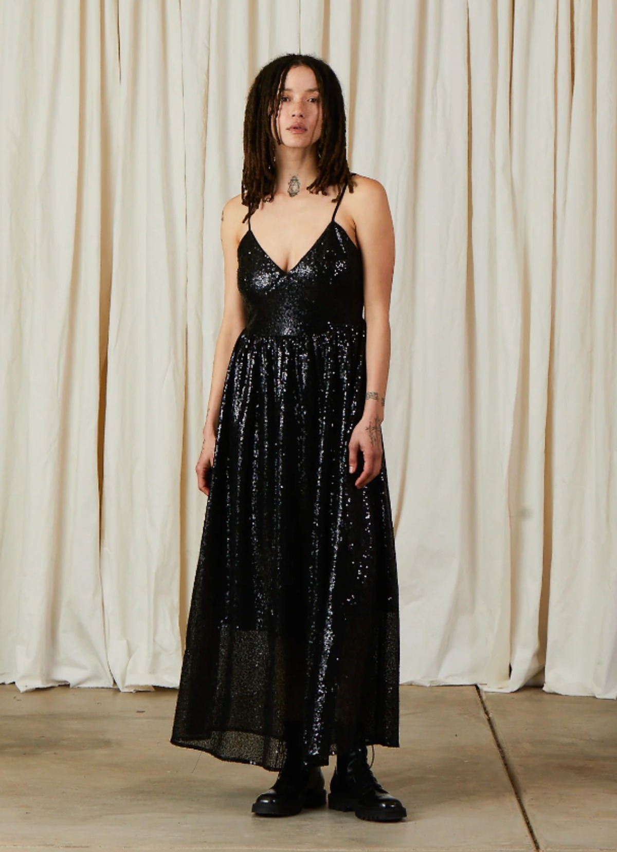 Ali GoldenTie Back Maxi Dress – Black Sequins – Shop the Glamorous Look at a Great Price!