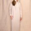 Sheer, flocked mesh dress with small side slits and adjustable straps. Made from recycled fibers.