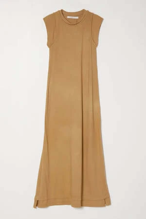 Long column dress in soft textured jersey. The delicate drape of this easy-on silhouette skims the body and conveys high summer ease.