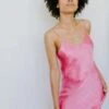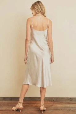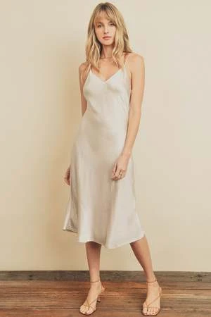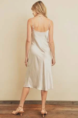 This satin midi slip dress features a bias cut hem and adjustable shoulder straps. Made of 97% Polyester and 3% Spandex.