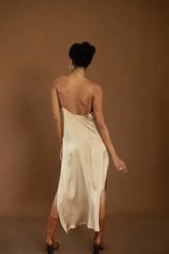 The effortlessly elegant SILK SLIP will have you captivated. With a flattering neckline, low back and high side slits, your best features are on display as you move about your day with ease in our signature hand dyed silk. Customize the look with adjustable straps worn over the shoulder, or crossed over the back.