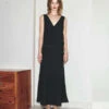 Mini dress in forest green cotton printed with white vines and tulips. Black velvet ribbon crossed across the front bodice, and around the sleeves and bottom hem. Voluminous sleeve tapers into long cuff with buttons. Back zipper closure. Pockets.