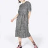 The Gwen Dress in Inglesham by Batsheva is a square neck, midi dress featuring halter strap ties and ruched bodice with a tiered skirt.