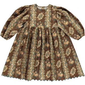 Lovely Darja dress features voluminous pouff long sleeves, loose fit and mother of pearl buttons in the back. And of course flouncy skirting – perfect for twirling.
