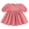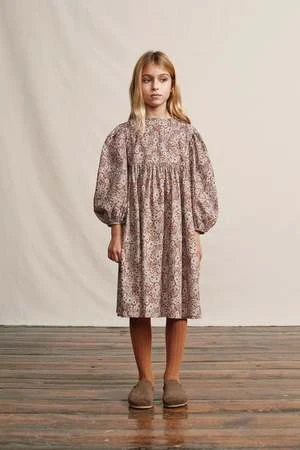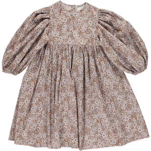 Signature Flora dress is made of cotton in lovely signature prints – ditsy floral and vintage daisies. Features loose fit with voluminous balloon sleeves and mother of pearl buttons in the back. Flouncy skirting – perfect for twirling.