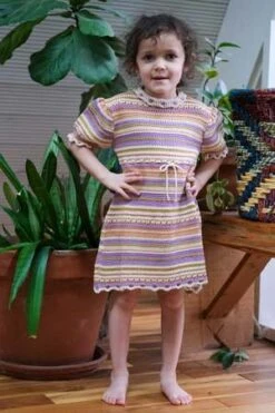 Paloma dress in crochet knit in multi color organic cotton yarn is an adorable and fun style for upcoming summer days.