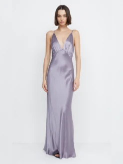 A sleek and feminine event wear style, the Lorelai V Maxi Dress is cut on the bias from a speciality fabric that skims the silhouette. The effortless maxi dress features a plunging V neckline, bust darts at princess line and thin spaghetti straps, finished with a narrow rolled hem. This garment is certified Australian made.