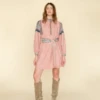 FIT: designed for a maxi-length silhouette that skims the body. Dress is accessed through pull on styling. Speciality fabric offers no stretch to the fit.