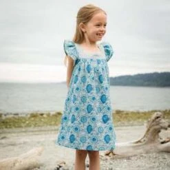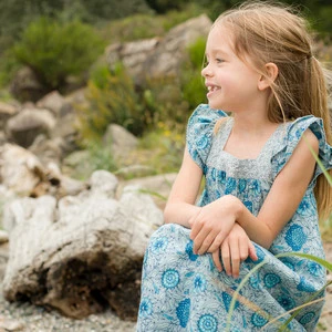 A dress that is light, breezy and feels as good as a sweet summer song. The charming Everly Dress features a square neck, flutter sleeves and an A-line body and many gathers. Weve designed it in our two most stunning fabrics for the season the eye-catching Jaipur block print and the vivacious pink all over embroidered fabric. Its beauty in a dress form your little ones will love!