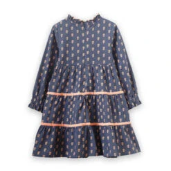 The Lily dress is a stunning look with a tiered skirt, velvet trim and ruffle detail around the neck line. The wide skirt and extra length give it dollops of charm. A back zipper makes it comfortable to get on and off. Ages: 18 months to 10 years.