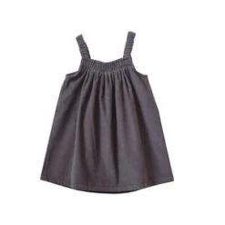 We are so happy to bring you this versatile dress in a soft, medium weight vintage gray corduroy. It features an elasticated pinafore neck and straps making it effortless to get on.