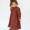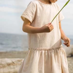 Introducing the charming Willow dress, made from a soft cotton fabric that your little ones will love. With embroidered picoting detail on the neck and sleeve edges, and a ruffled waist overlocked in a darker tone, this dress is both elegant and playful. With plenty of room for movement and a comfortable, everyday style, your little ones will feel confident and chic wearing it for any occasion. Get ready for admiring glances wherever you go!