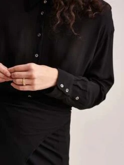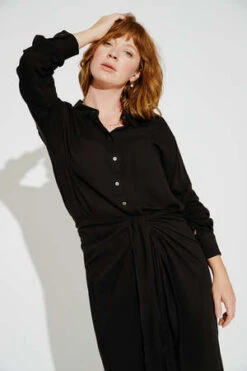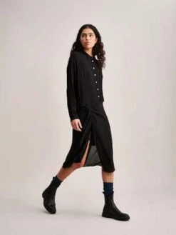 A pareo dress means summer, right? Well, not necessarily! Made from light viscose, this pareo dress features a classic shirt top and a self-tie skirt. Both classic and daring, this black version will take you from desk to diner, but you can also hit the casual aisle by pairing it with a pair of new balance, for example.