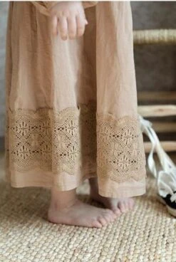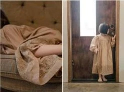 From Bien a Bien for Spring/Summer 2021. Maxi dress with special details – puff shoulders, empire waist, and lace inset.
