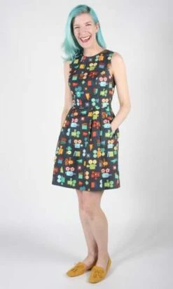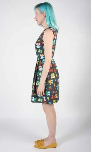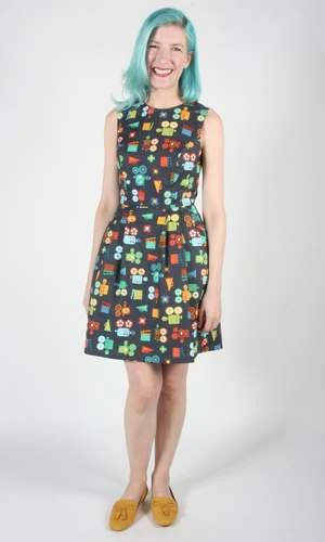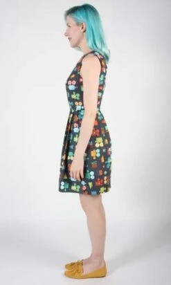 Bulbul has a back cutout detail and pockets in the skirt. It closes with a back invisible zipper and two buttons at the top of the cutout. The dress is fully lined in cotton voile.
