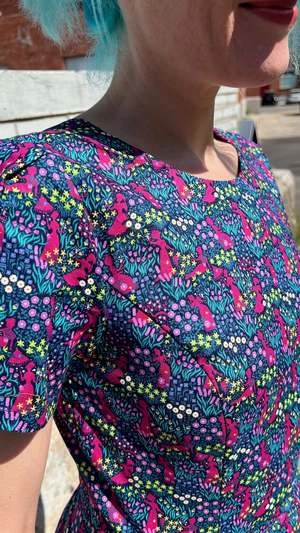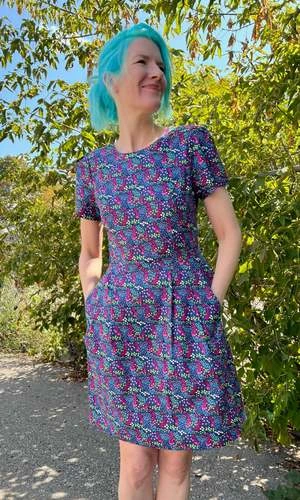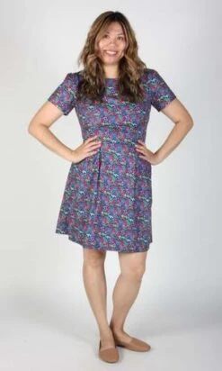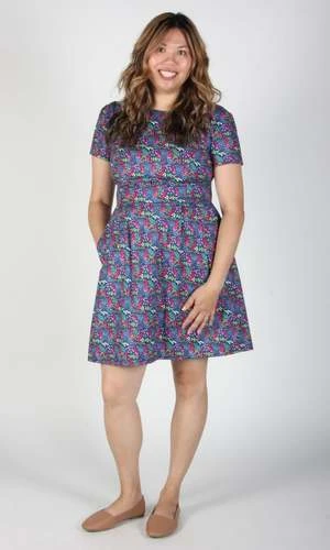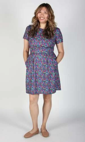 Engoulevent is one of our most popular dresses, and we have it in gorgeous new prints this season! This style has capped sleeves, pleats at the waist, skirt pockets, and it closes with a back invisible zipper.