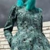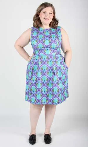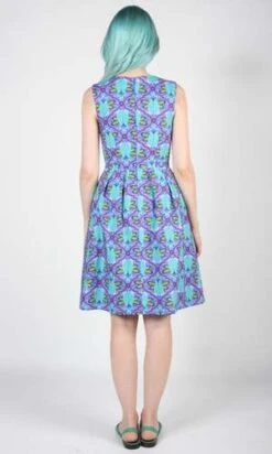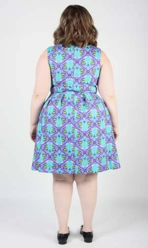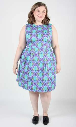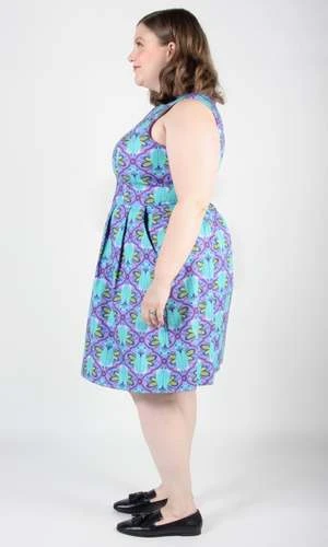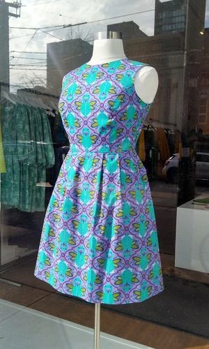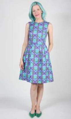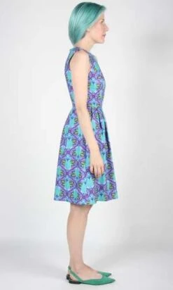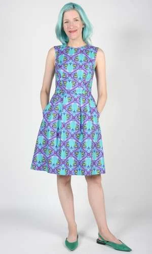 Peafowl is one of our classic Birds cuts with a fitted waist and pockets in the skirt. The skirt is lined in cotton voile and the dress closes with a back invisible zipper.