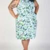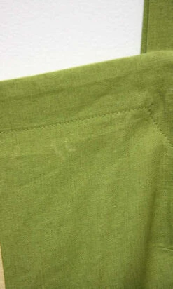 Shoulder to hem measures 42″. The fabric is 55% linen, 45% rayon, and you can hand or machine wash the dress on a delicate cycle in cold water and hang it to dry. Made in Canada.