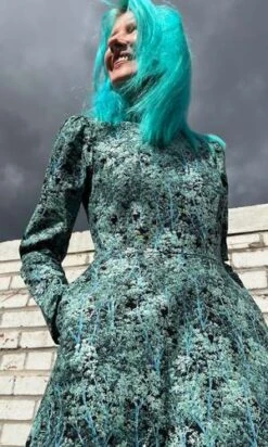 The return of Topaz! We first did this cut for the fall of 2020, and it was a huge hit! We have it for the first time again in lovely new fall prints. It has long sleeves, a standing collar and an A-line skirt. The skirt has pockets and is lined in soft satin, and the dress closes with a back invisible zipper.