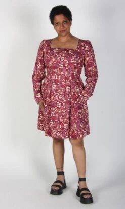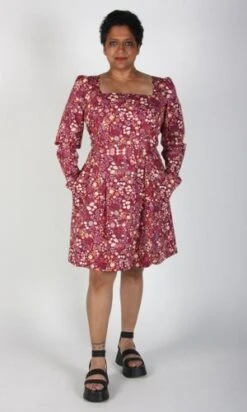 Birds of North America’s Twixt Hell and the White Dress is their longest style name ever, a special title for a special dress! This style has a square neckline and full length sleeves. It has a vintage-inspired fit-and-flare cut with waist pleats and side pockets. The printed cotton is sure to add a bit of fun no matter where you rock this dress.