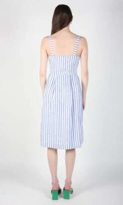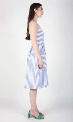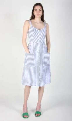 Vesper Sparrow is the epitome of breezy summer style with its playful stripes and easy fit. It’s made of a gorgeous 100% linen and is fully lined in breathable cotton voile. It has front patch pockets and the front closes with a long row of white buttons.