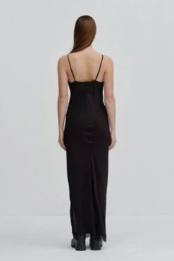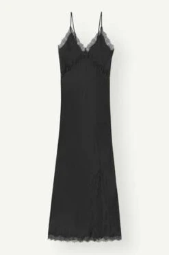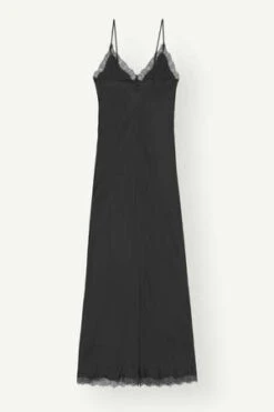 Meet The Jonathan Slip Dress in Black from Birgitte Herskind. Made of fabric with the FSC certificate, this design features black lace trims, adjustable shoulder strap and slit at the hem.