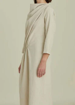 – A RELAXED DRESS , SLIGHT COWL NECK