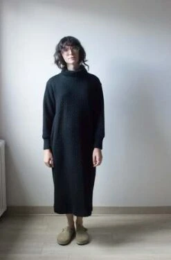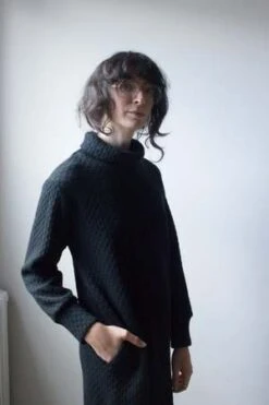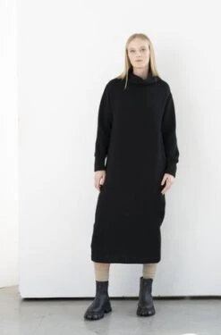 Bodybag’s Stewart Dress is comfort chic. This cozy maxi dress has a wide turtleneck, long sleeves and side pockets. The mid-calf length will keep your legs warm all day. The boing knit fabric is made in Quebec and features a lovely texture. Pair it with tights and boots for an instant outfit!