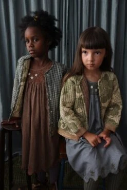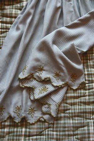 – Scalloped hem with moss green embroidery detail