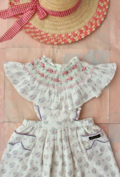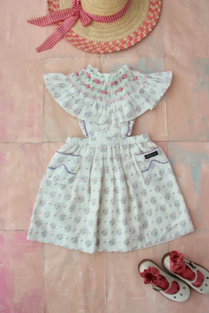 From Bonjour’s new Spring / Summer 2022 collection. A fresh and new iteration of Bonjour’s famed apron dress, this season the Reina Dress features an exaggerated, hand smocked and embroidered collar and high neckline. This summery dress can be worn on its own or layered on top of a simple tank.