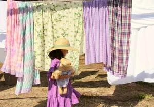 – Fully lined in purple cotton voile, top is lined in green gold dot cotton