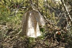 From Caramel London for Spring/Summer 2021. Relaxed fit baby girl dress in ivory and chocolate brown ditsy floral cotton. Delicate smocking along the neckline lends a beautiful drape to this puff sleeve dress. The cut is versatile and easy to wear.