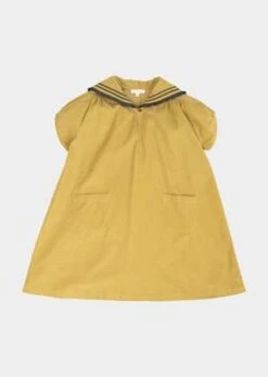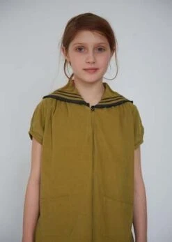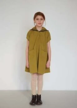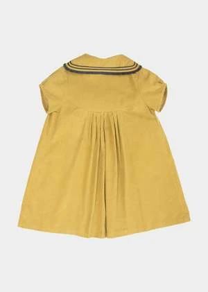 Musing on vintage nautical styles, our corduroy Laila Dress in sumptuous Lime adds a vibrancy to the winter wardrobe. The single button opening at the yoke of the dress, full-skirt silhouette and back pleat ensure easy wearing and movement, and the pleated frill at the edge of the sailor collar contrasts the lime shade with its dark grey trims, resulting in a distinctive and stylish piece.