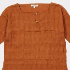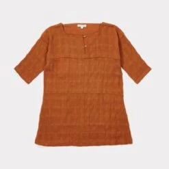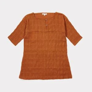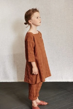 From Caramel. Casual textured cotton girl’s tunic with slim, short sleeves and square neckline.