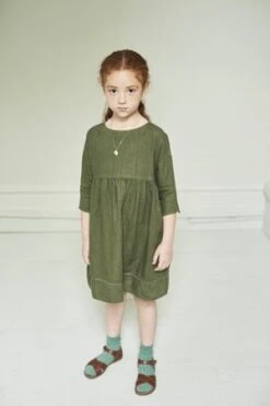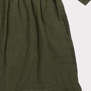 New from Caramel for Spring / Summer 2020. This dress has a relaxed ease to the silhouette and beautiful drape. Cut from dark moss green linen, this dress features special details