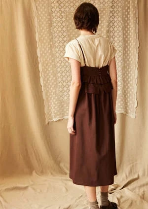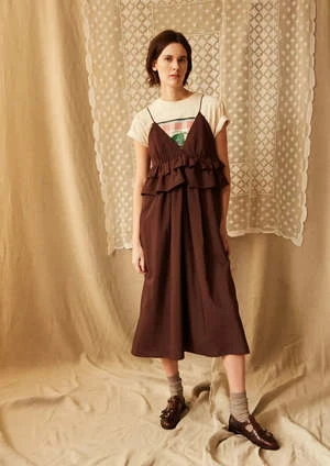 The Renzo Dress from Caron Callahan is a spaghetti strap, v-neck dress with ruffle detail below the bust. Features button closure at the back. We love this layered or on its own.