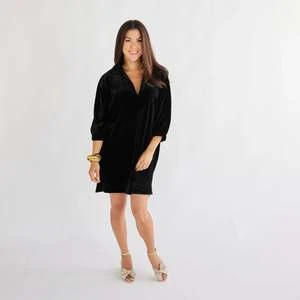 Make a bold statement in this Betsy Collar Velvet Dress! Featuring a luxurious black hue and a festive holiday velvet, this dress will add a touch of glamour to your wardrobe!