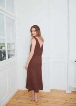 an effortless day dress featuring a flattering v neck line, asymmetrical seam detail and bias cut skirt in a mid length to wear as a set or separately.