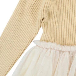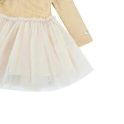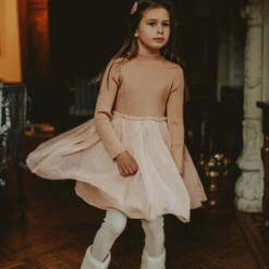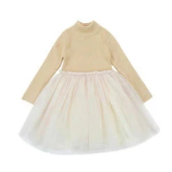 Ballerina dreams! This beautiful dress with a tulle skirt will turn your baby girl into a fairy! The knit top with a high neck will make sure your little girl stays warm during the holiday season while still looking lovely. This dress will be a wardrobe favorite in no time!