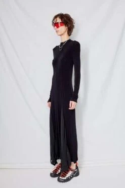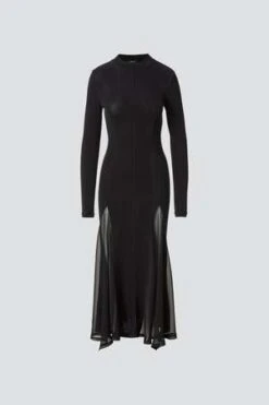 Black Sheer Panel Jersey Maxi Dress from Drae. Woven Knit Dress