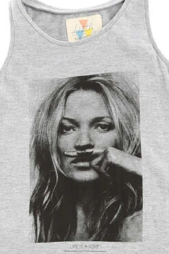 Exclusive tank dress by Little Eleven Paris with Iconic Supermodel Kate Moss in the classic LIFE IS A JOKE graphic print. Crafted in super soft, rich quality cotton for a comfortable fit.