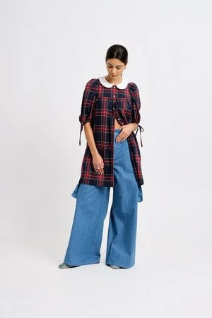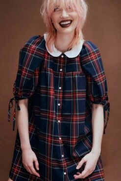 Eliza Faulkner’s Evelyn Poplin Dress is a plaid party inspired by the timeless school girl uniform! This dress has elegant half sleeves, a relaxed fit and a hem that hits at the top of the thigh. We love the dainty peter pan colour and tiny buttons. This dress is fashionable yet wearable and is begging to be layered with other pieces. Rock it on its own with tights or style it over a pair of wide-legged pants for a modern feel.