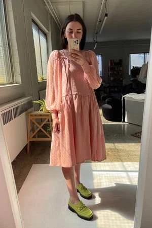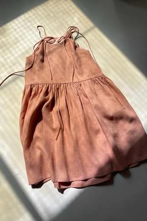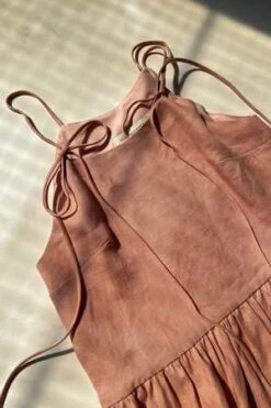The linen Tig dress is our most versatile and easy-to-wear dress for summer. This pink A-line dress with a full gathered skirt is suspended from matching spaghetti strap ties that can be adjusted to whichever length you like…plus, the bodice is fully lined and it has pockets!