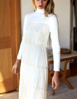 – Ponte body w/ 10 inch fringe