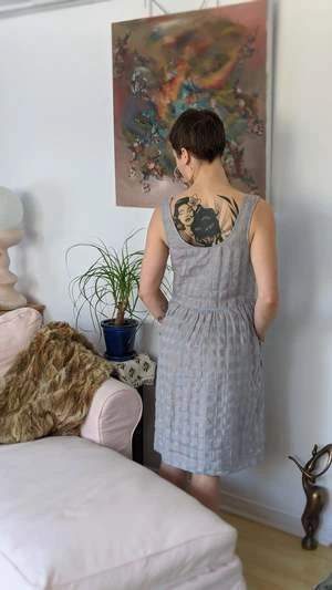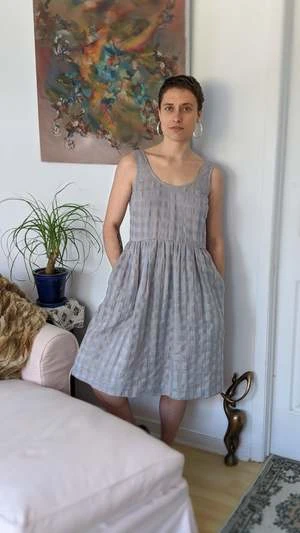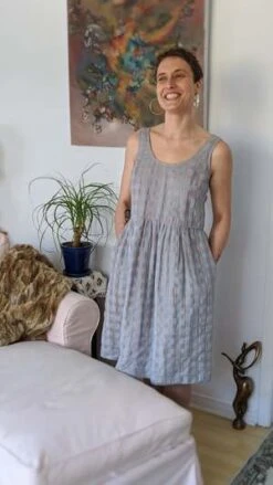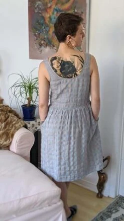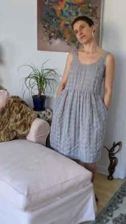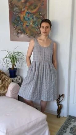 Everyone needs a fun summer dress! Eve Gravel’s Pearl Dress is giving us cottagecore vibes with its opaque cotton/linen gingham fabric and full skirt! This dress has a big scoop neck, sleeveless tank straps and a hem that hits below the knees. The empire waist has gorgeous pleats, making the skirt voluminous and feminine. This would look great on its own with some chunky platform sandals, or styled with a turtleneck underneath in the colder months.