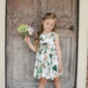 This a-line sleeveless dress features the classic fort logo print and is made of 100% linen. It softens with every wash and is adorned with natural wood buttons at the back placket and a cute front pocket for rock collecting. Made with love in Canada