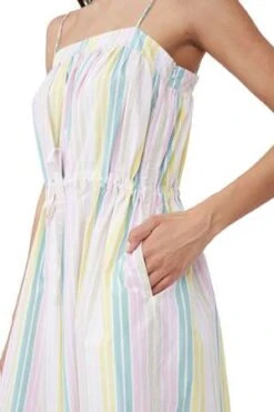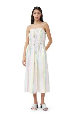 A vibrant and versatile style, the Cotton Poplin Maxi Strap Dress by GANNI. Made from a crisp organic cotton, this dress boasts a square neckline, spaghetti straps, A-line silhouette and an adjustable tie waist. Pair with sandals and sneakers for an effortlessly cool look.