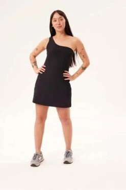 The dress of all dresses. The Bianca is a one shoulder Compressive dress with a built-in unitard liner, elastic support band under the bust, and hidden pockets.