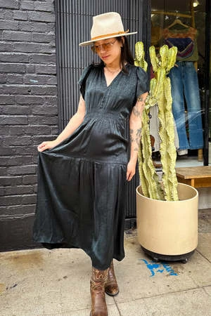 Midi length teared dress from Grade & Gather. The perfect piece to dress up or down any look! Try with your fav jeans, or your fav heels… or why not try it with both! You’ll love em’!