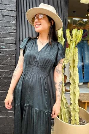 Grade & GatherTextured Satin Midi Dress – Dark Forest